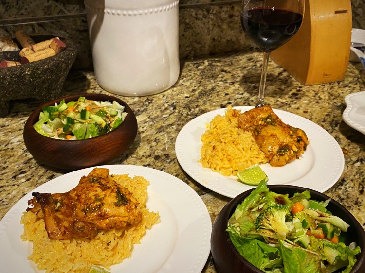 You could take this to the next level and prepare rice, while the chicken is baking. I did and it was awesome. I used the drippings from the chicken searing pan to add to the boiling rice. And honestly, it was beyond awesome. Oh and, if you are doing this a la European style, then remember to make a simple salad and eat it last! And last but not least, do not forget the wine for goodness sake!