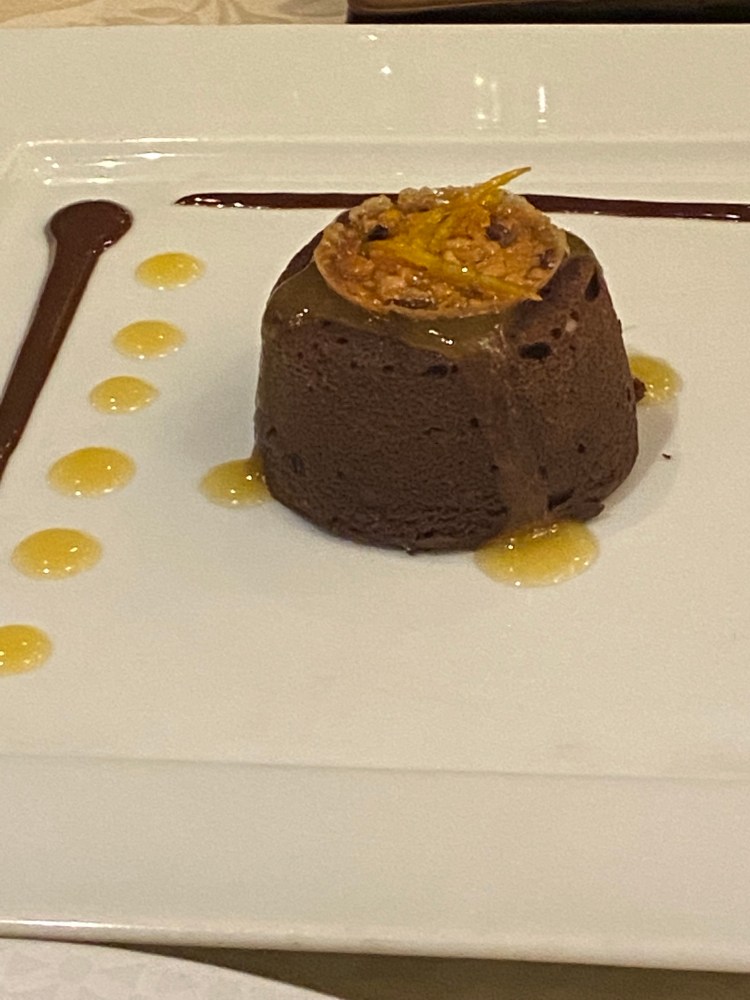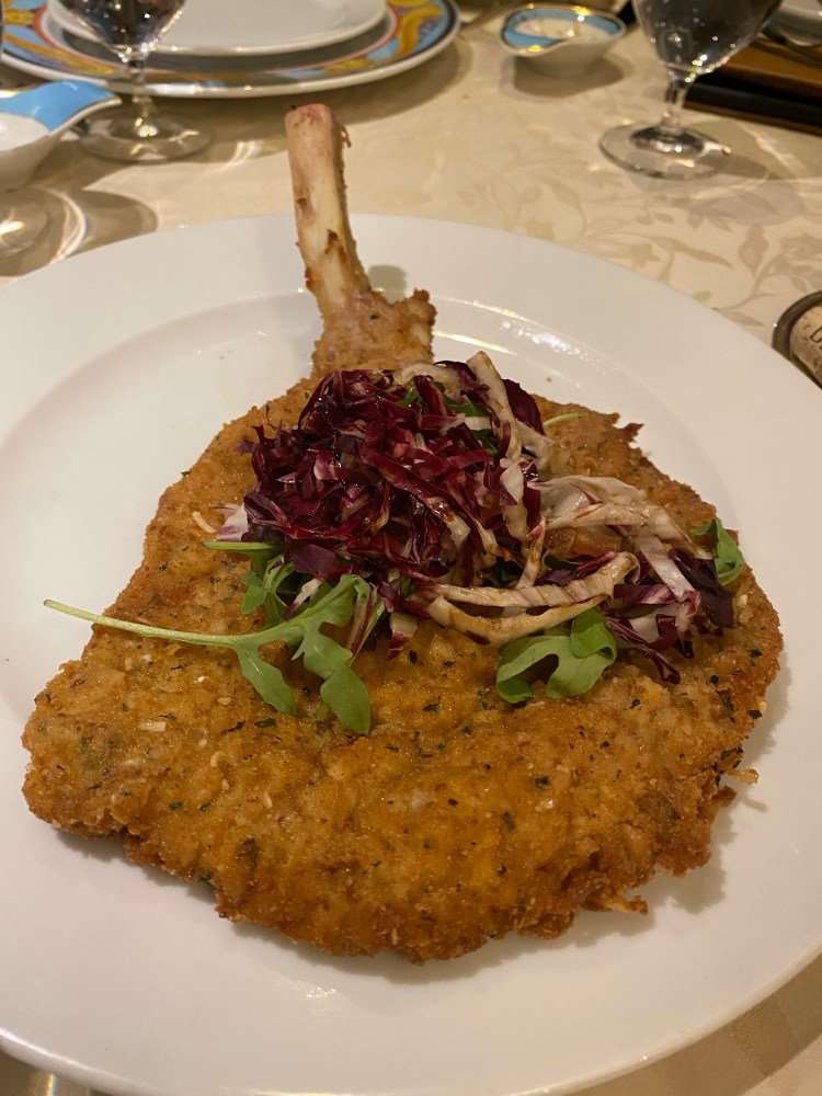 For dinner I had the bone-in milk-fed veal chop pounded thin, with a very light breading. It was sauteed in what tasted like a very light olive oil. This dish came highly recommended from another cruiser, we met at happy hour, and it was wonderful. Reminded me of a milanesa.