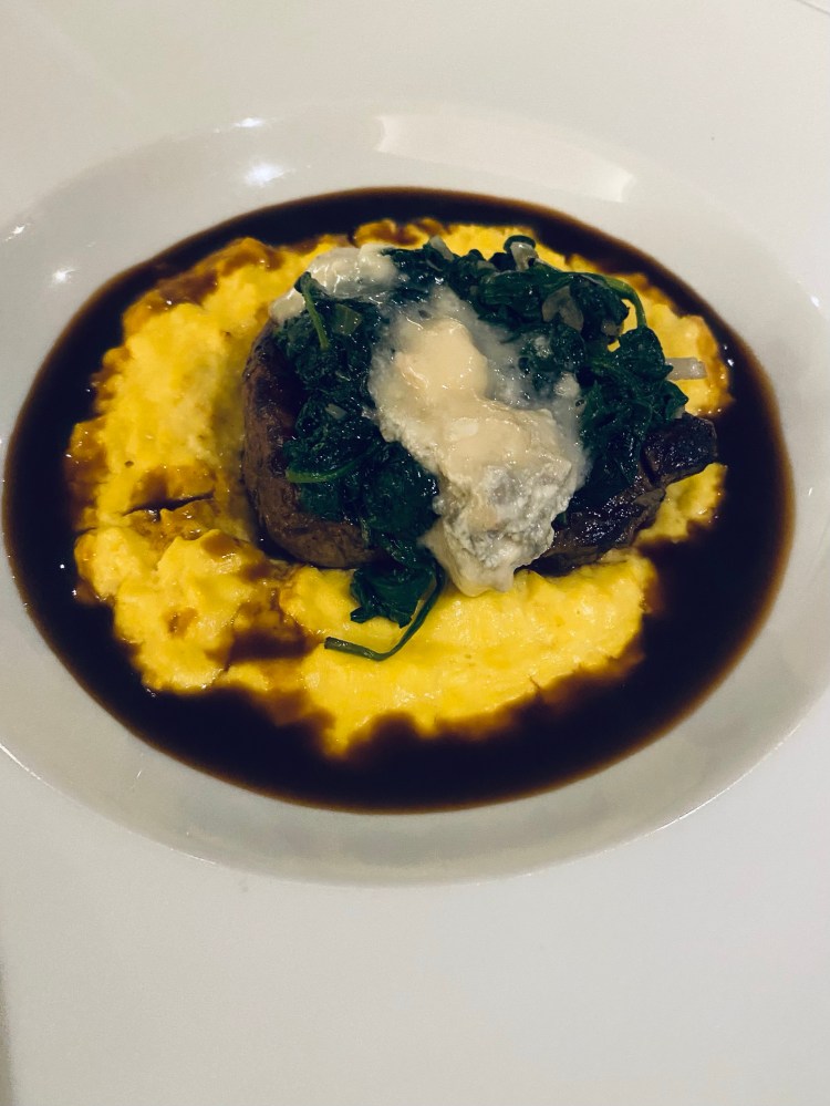 My husband ordered the Filet Mignon served with sauteed garlic spinach and polenta in a red wine sauce. The filet was prepared perfectly at medium rare.