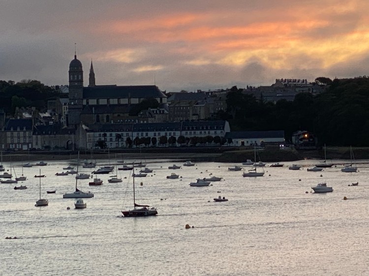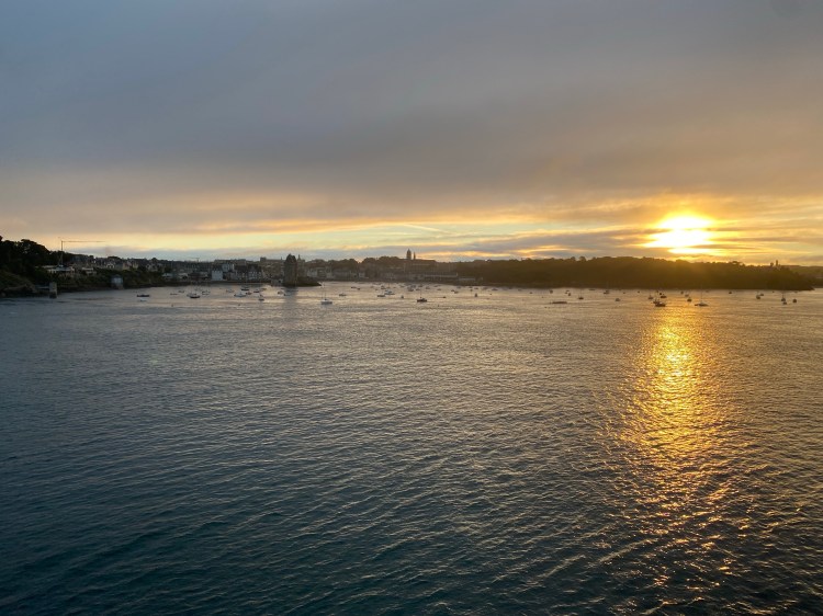 Today, we would have to board a tender to go ashore, and I was looking forward to the adventure! We had a half day excursion booked to visit a place called Mont-Saint-Michel Abbey. I had no idea what this excursion would be about, as this was one of the last-minute port changes that had to be made because of COVID restrictions for Americans in Ireland. Right now, as I was basking in the sunrise, I really just wanted to relax and soak in the local scene. Reluctantly, I finished my coffee and avocado toast. Leaving my “good” camera behind (because I didn’t think we were going anywhere very special), I followed my husband to the tender pickup.