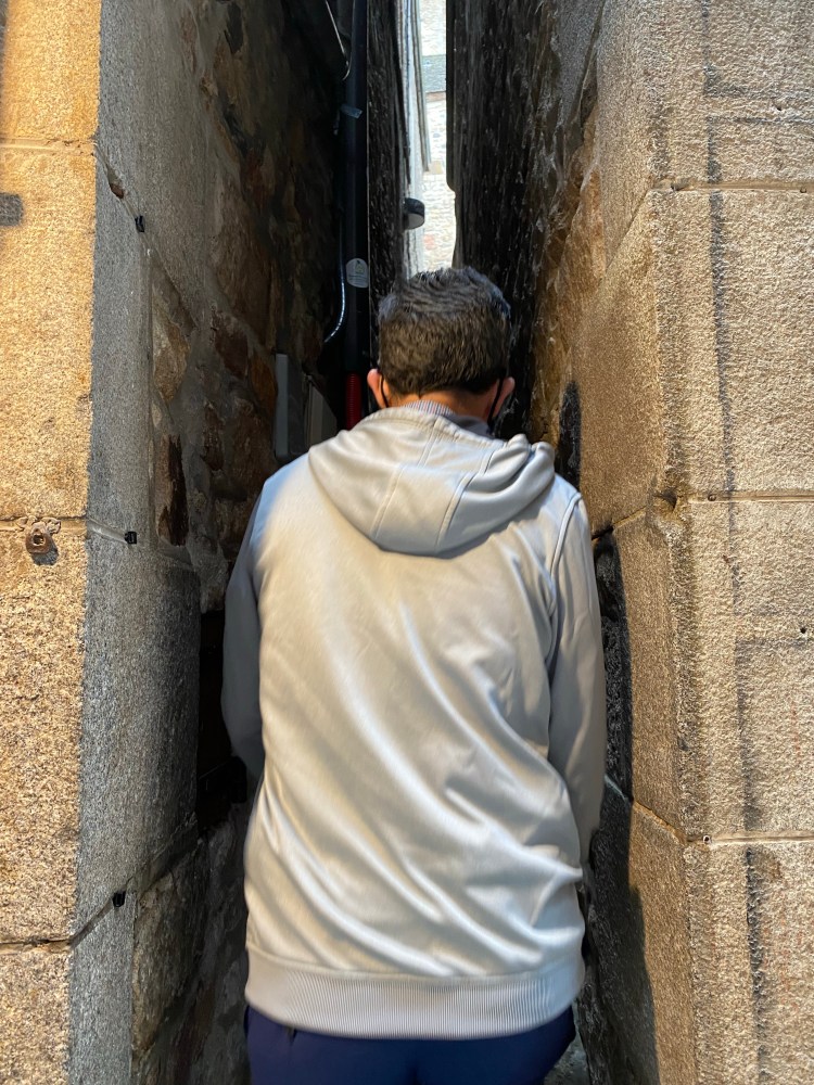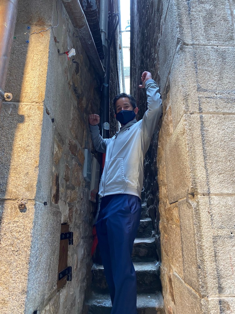 As we were walking out of Mont St. Michel, there was a little alley way leading up to a bar. Apparently, the thinnest street in the World? Don’t fact check me on that…I was just eavesdropping on another group’s conversation! I had my husband stand in the street for a photo op. He is such a good sport!