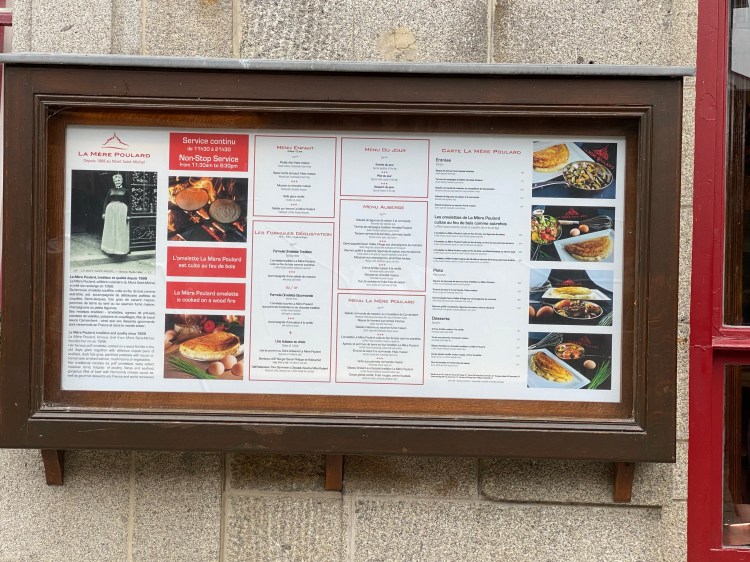 Interestingly, our guide recommended we not eat at the Abbey, because the food wouldn’t be that great, but if I were to go back, I would absolutely eat there. I am a little bummed we missed out on this experience. There is even a Michelin star restaurant (2019), Le Mere Poulard (known for their omelettes) in the little town, so I feel like I really missed an opportunity here.