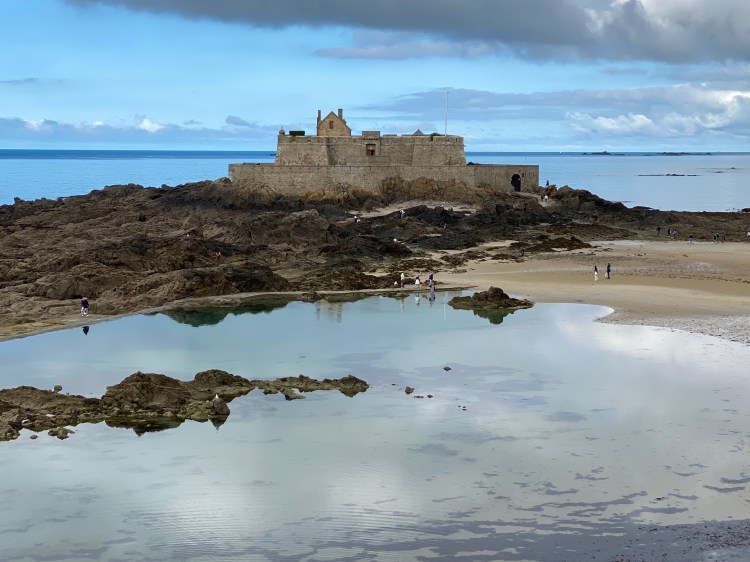 As we approached the structure, the guide was telling us that this was a special place because the water around the castle recedes throughout the day for low tide. I thought, “big deal”, the water recedes. She stated that we would notice people in shorts and barefoot, waiting for the water to go down so that they could enter the estuary and explore.
