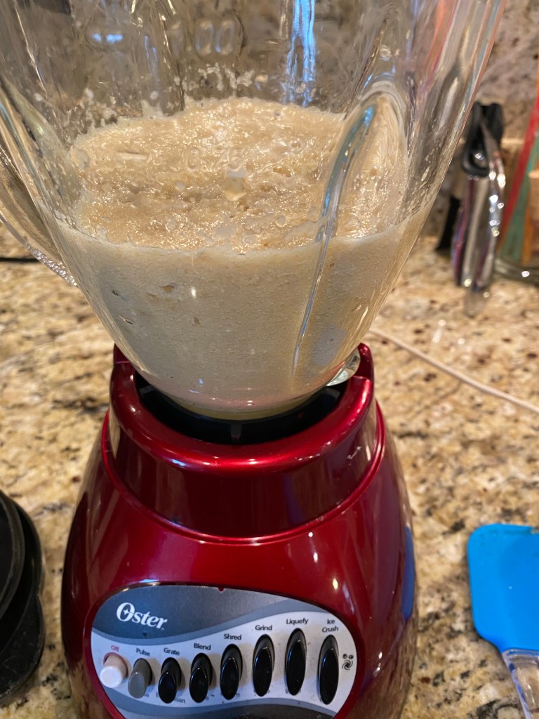 Wait 30-minutes then, in a blender, Purée onion and garlic. Add about a 1/2 cup of chili water from the pot of soaking pods, to help the blending.