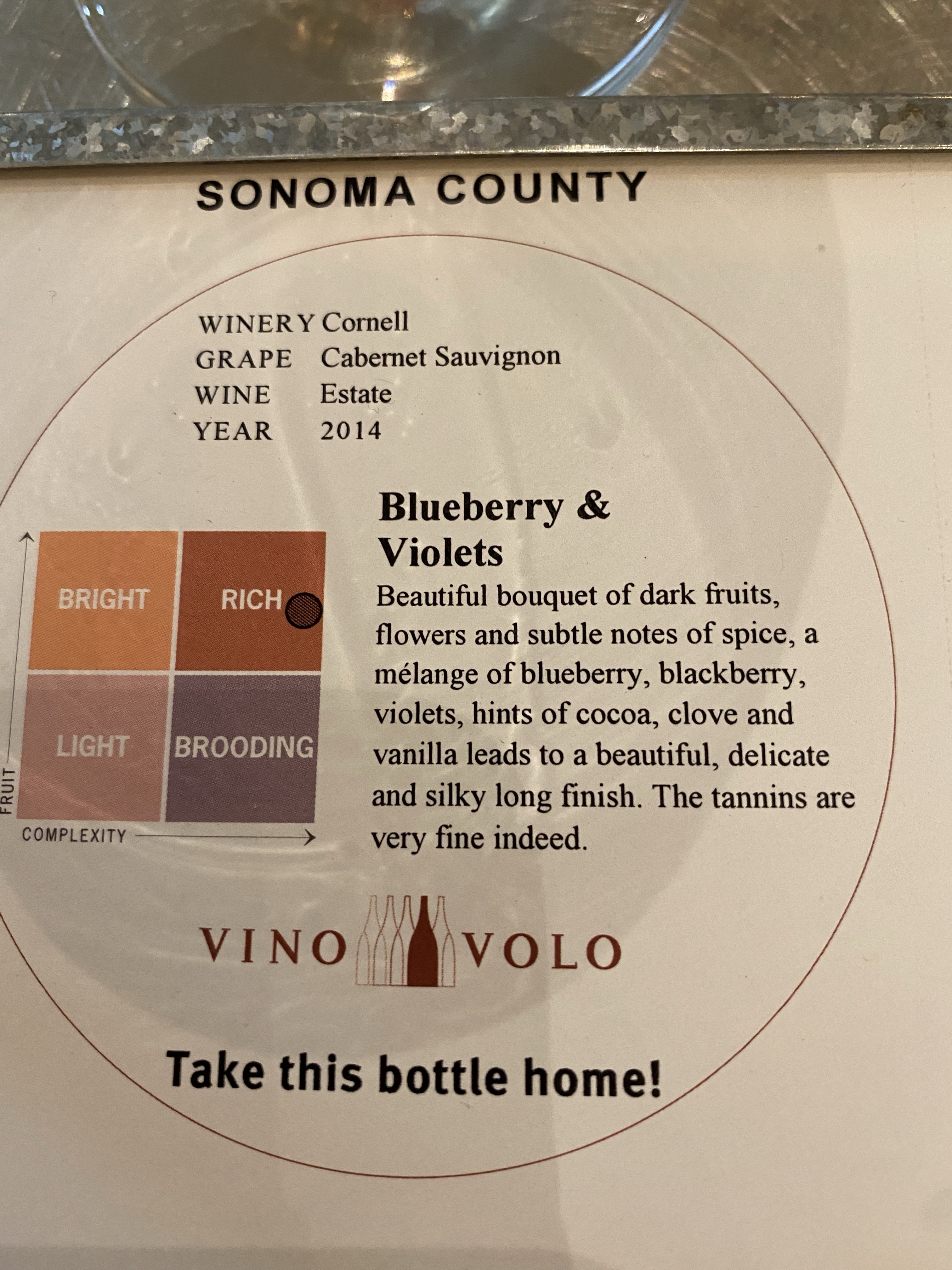 Today, I am at the Airport on my way back to the East Coast. I had about 3-hours to kill, so I had to make a very tough decision. Mexican food or Vino Volo? Yep, you guessed it, Vino Volo it is! I ordered the “Blockbuster Red” flight. A little pricey but, it had some very promising offerings of Bordeaux style blends. I started with an Opus One, then on to a Brio 2015 Red Blend…but the Cornell Vineyards 2014 Cab Sav was the true stand out here!
