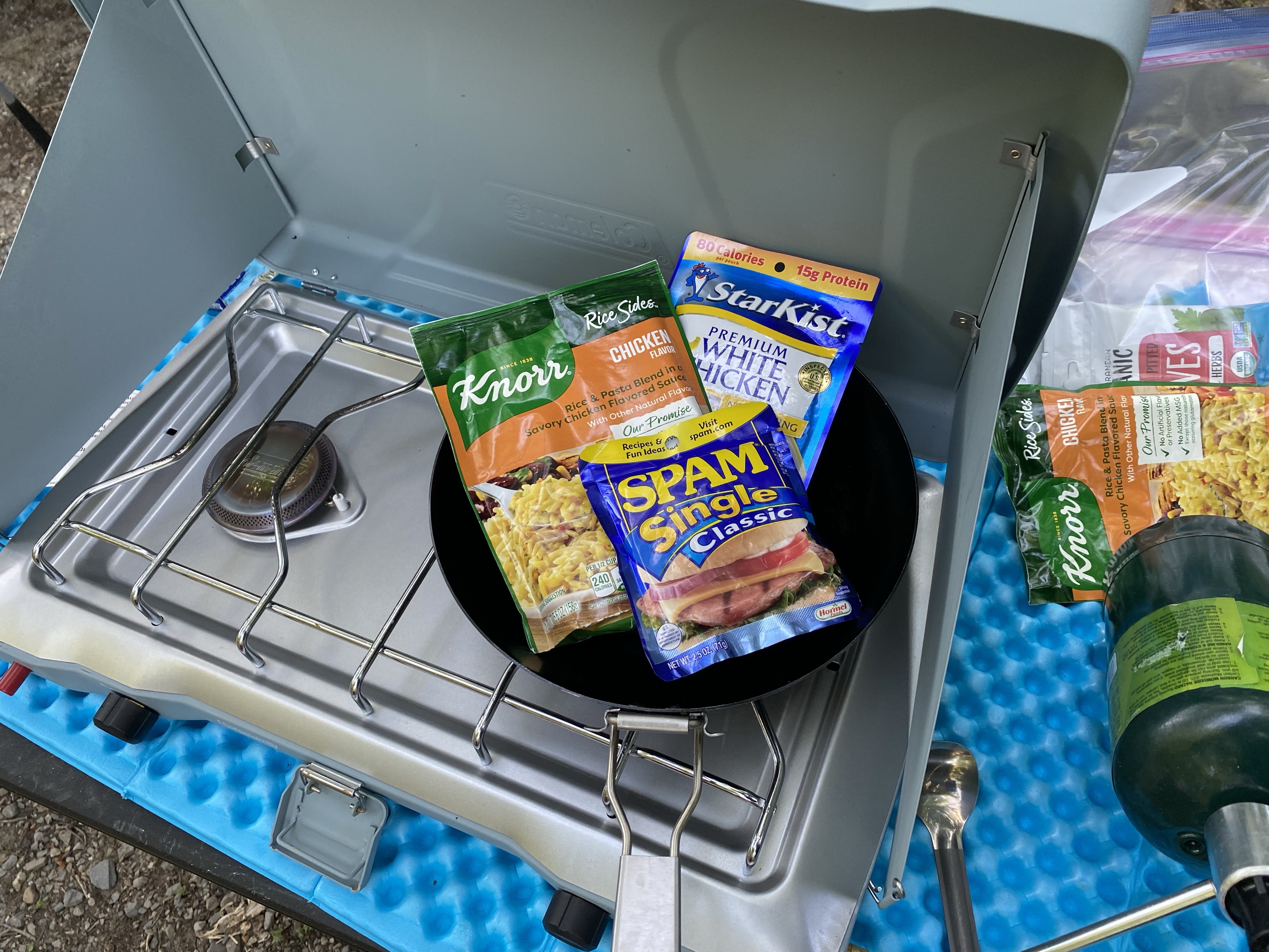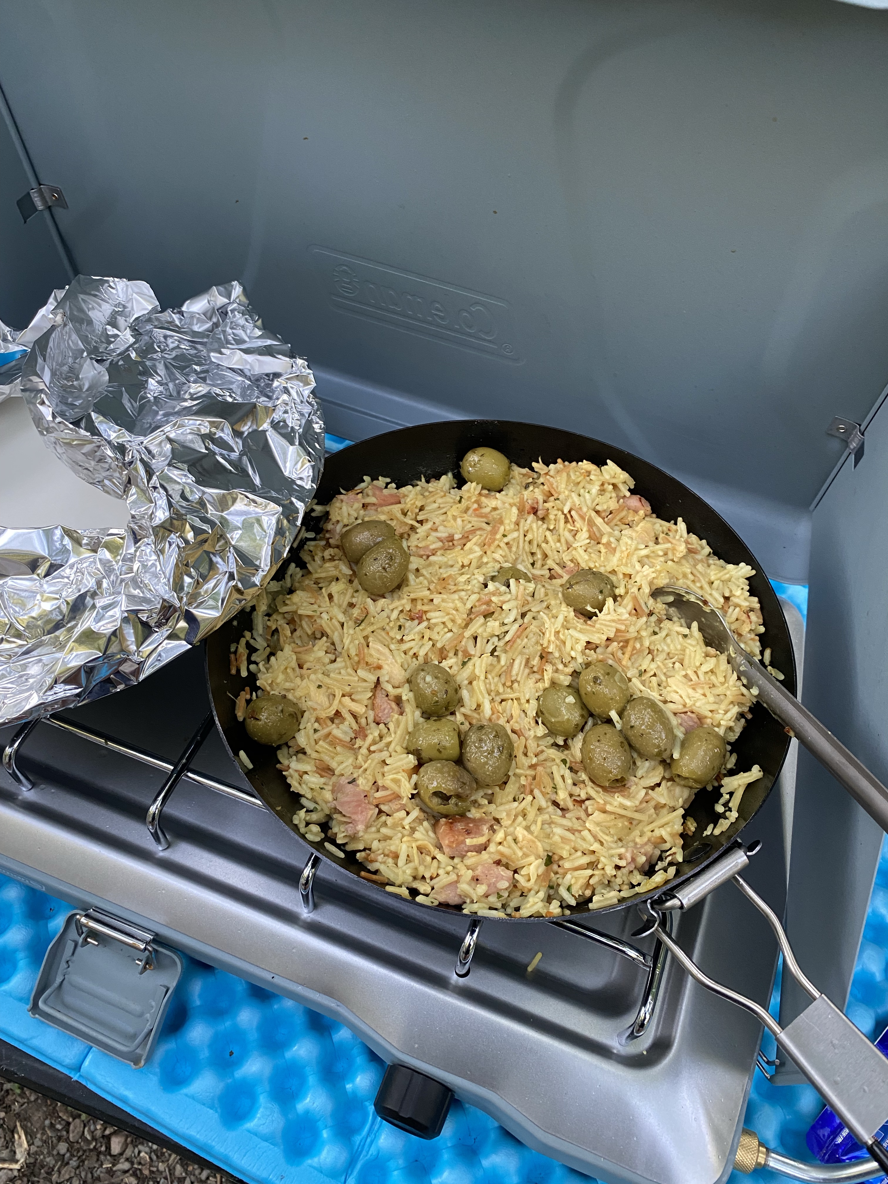 I don’t know about you but sometimes i get a hard craving for paella and being on trail means THAT craving will be difficult to satiate! While hanging out at camp and going thru supplies, i found the perfect combination of stuff to throw together a quick trail paella!