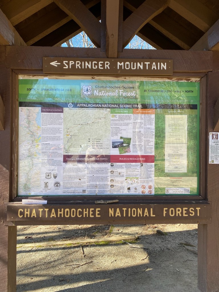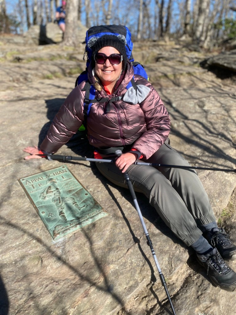We got a super late start, hitting the trail to the top of Springer Mountain in Georgia at approximately 5:30pm. It’s a 1-mile hike to get to the top to start!! Probably not the smartest move as it was about 30 degrees F and super windy, making the wind chill drop temps in to the 20’s. Needless to say it was super cold!!