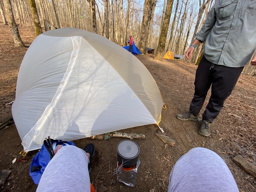 When we arrived at Low Gap, AU already had his tent set up. He helped us to orient our tent to better prepare for the impending storm blowing in from the Southwest.