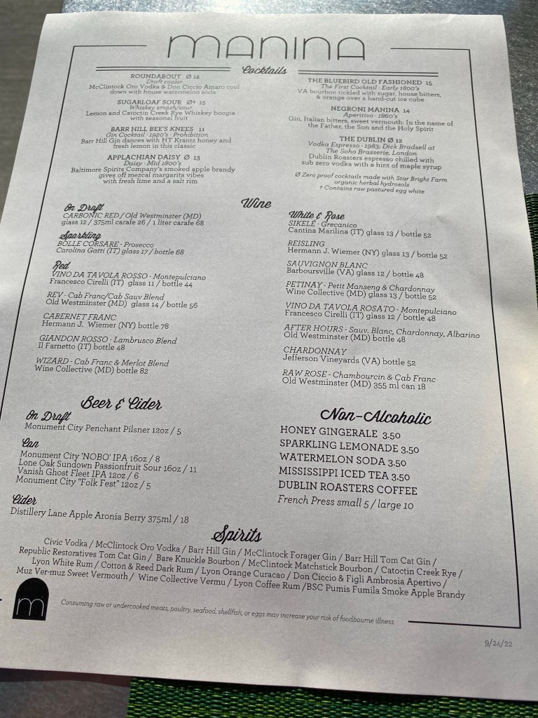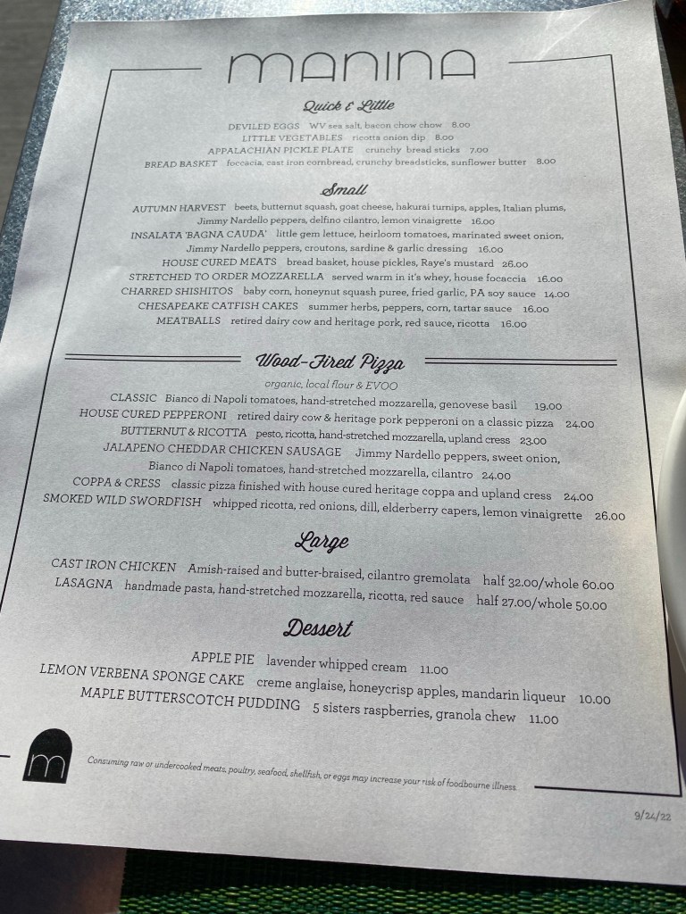 Manina is fabulous and an absolute MUST TRY, if you are a foodie or just love eating great food, expertly prepared. The menu is a little limiting and you must check daily for what is being offered. But with a fabulous Chef, you can really get some unique pairings. Now, this can be risky as a new restaurant but, this foodie finds it refreshing and bold! I’m tired of trying the same old menus. Bravo to the owner for creating something new!!
