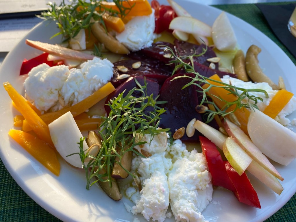 For our main plates I had the Autumn Harvest salad and my husband ordered the Coppa and Cress pizza. The salad had me closing my eyes to fully savor the flavors. The beets, butternut squash… and that goat cheese is magical. It must be local and very fresh made? The Coppa and Cress pizza had a fabulous flavor. The crust was a little too crispy for my personal taste but my husband loved it like that! The cress is the green stuff on top that has a spicy garlicky flavor note. I dipped my pizza slice in the remnants of my salad to scoop up more of that goat cheese and to fully enjoy the rest of the vinaigrette.