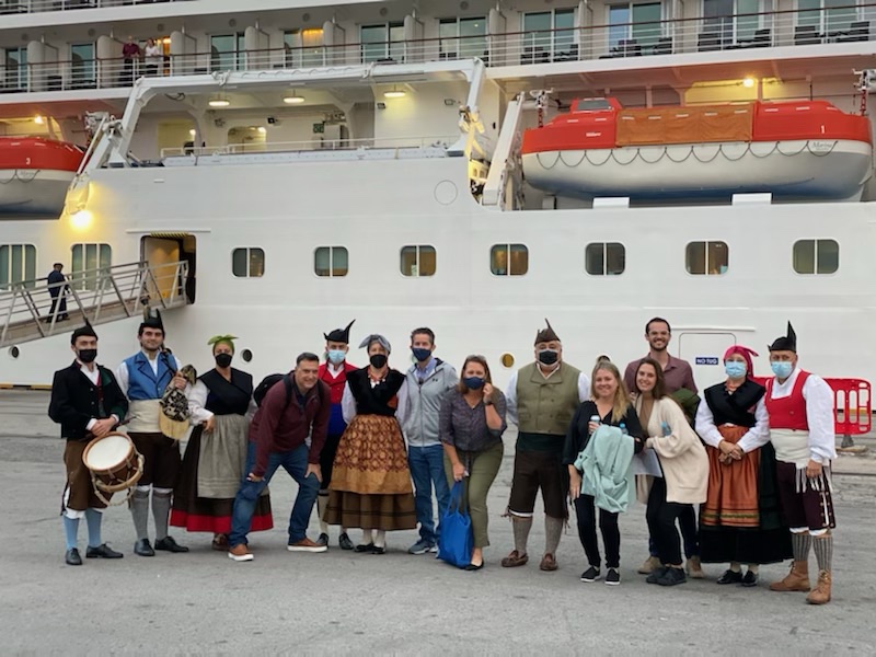 Exiting the ship in Gijon (pronounced Hee-hawn), there was a local dance troupe and band playing traditional local music.