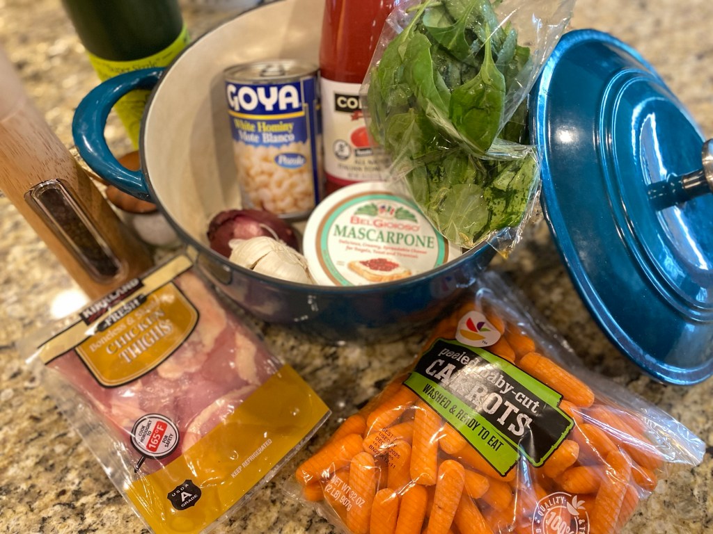 Lower heat and stir the tempered mascarpone into the stew until silky. Taste and adjust seasoning.