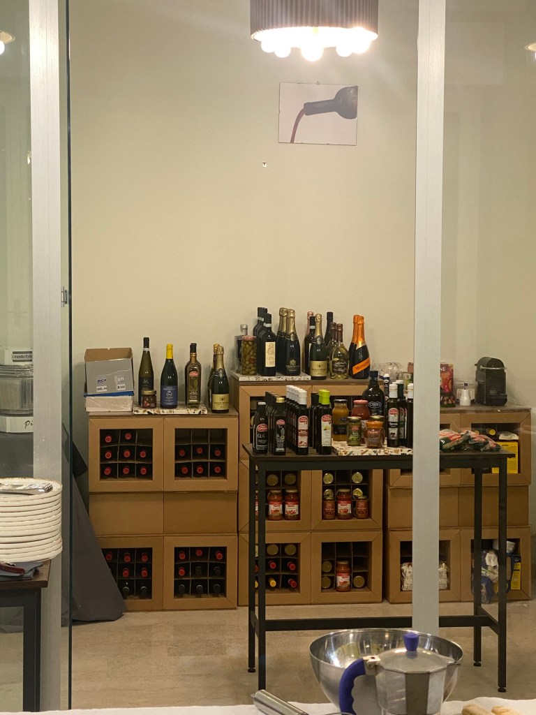 There were bowls of tomatoes, bottles of olive oil catching the light, fresh herbs tied in loose bundles, flour neatly mounded for pasta dough. Knives were lined with intention. Prosecco was already flowing.